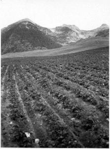 Monte Bondone / Coltivazioni sull'Altopiano delle Viote, sullo sfondo delle Tre Cime