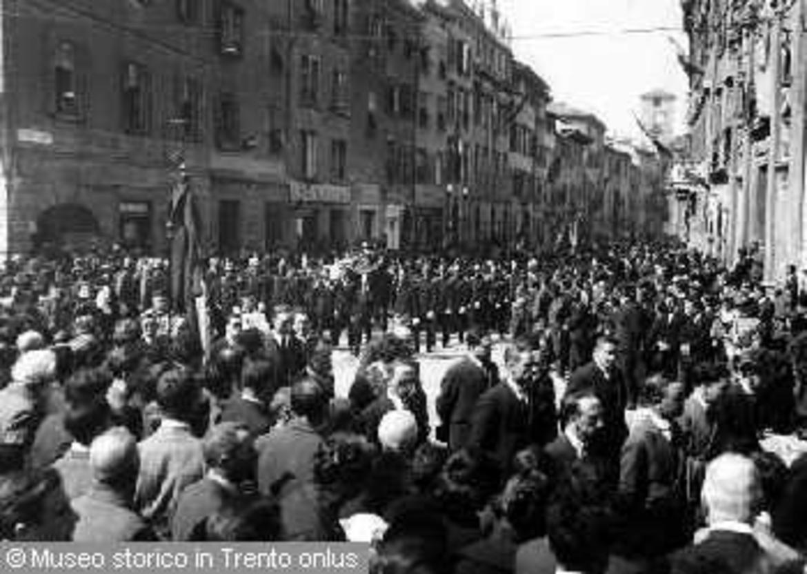 - TRENTO, VIA BELENZANI. CORTEO FUNEBRE IN MEMORIA DI EZIO BONFIOLI. 1924