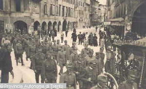 UDINE. CORTEO DI UOMINI IN DIVISA MILITARE IN OCCASIONE DEI FUNERALI DI TOMASO MAINA, PRIGIONIERO DI GUERRA. 7 LUG. 1918