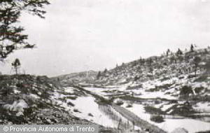 PAESAGGIO PARZIALMENTE INNEVATO, AL CENTRO STRADA STERRATA. 1916-1918