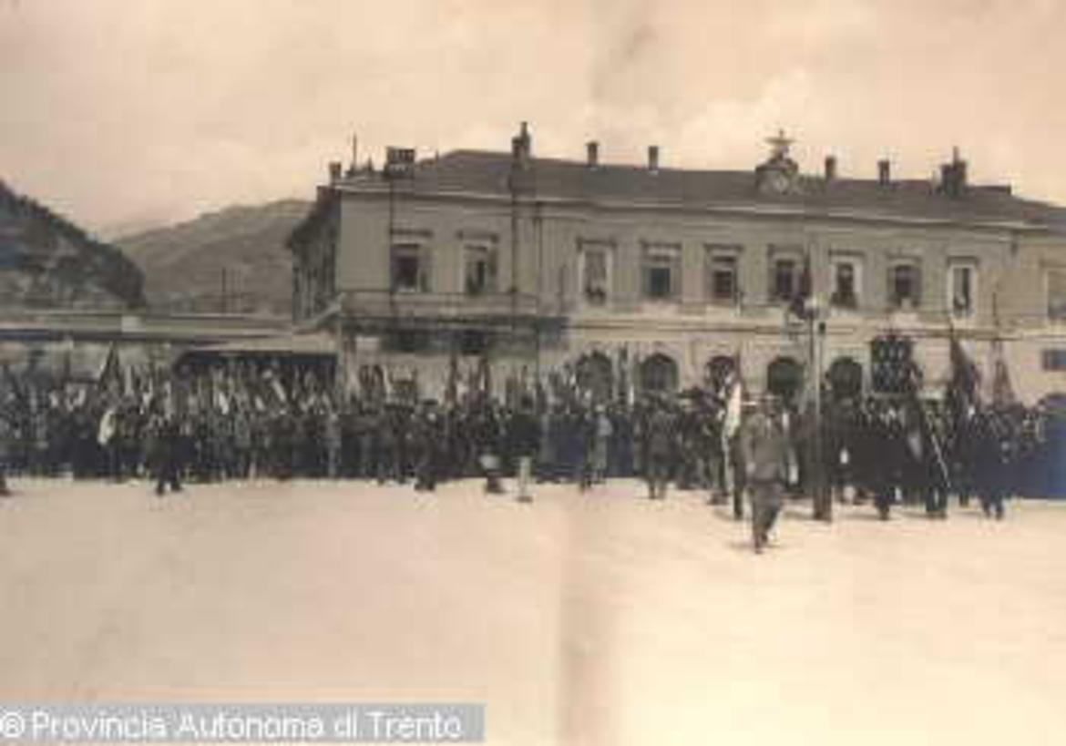 - TRENTO. PELLEGRINAGGIO DEI MUTILATI DI GUERRA. ARRIVO ALLA STAZIONE FERROVIARIA DI TRENTO. MAG. 1925