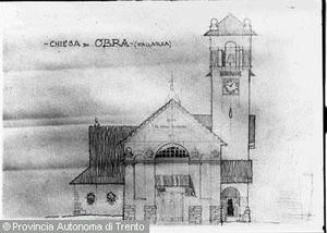 Prospetto della facciata della chiesa di Obra (Vallarsa TN)