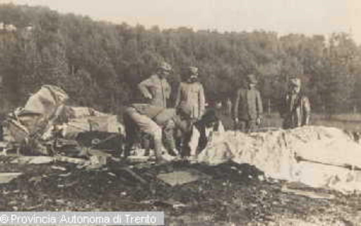 - MALPENSA. MILITARI INTORNO ALL'AEREO CADUTO INTENTI AL RECUPERO DELLA SALMA DI MARIO ZUCCALLI. 7 OTT. 1918
