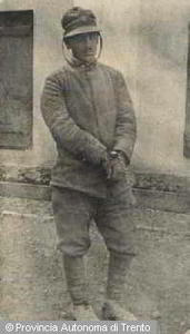 CASTELLO DEL BUONCONSIGLIO, TRENTO. RITRATTO A FIGURA INTERA DI DAMIANO CHIESA IN CATENE. MAG. 1916