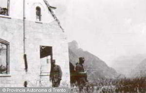 RITRATTO DI DUE UOMINI IN DIVISA MILITARE ITALIANA DAVANTI AD UN CASOLARE. 1916-1918