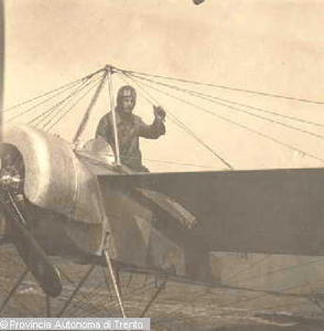 RITRATTO DEL PILOTA HANS MANDL ALL'INTERNO DEL SUO AEREO. AGO. 1915