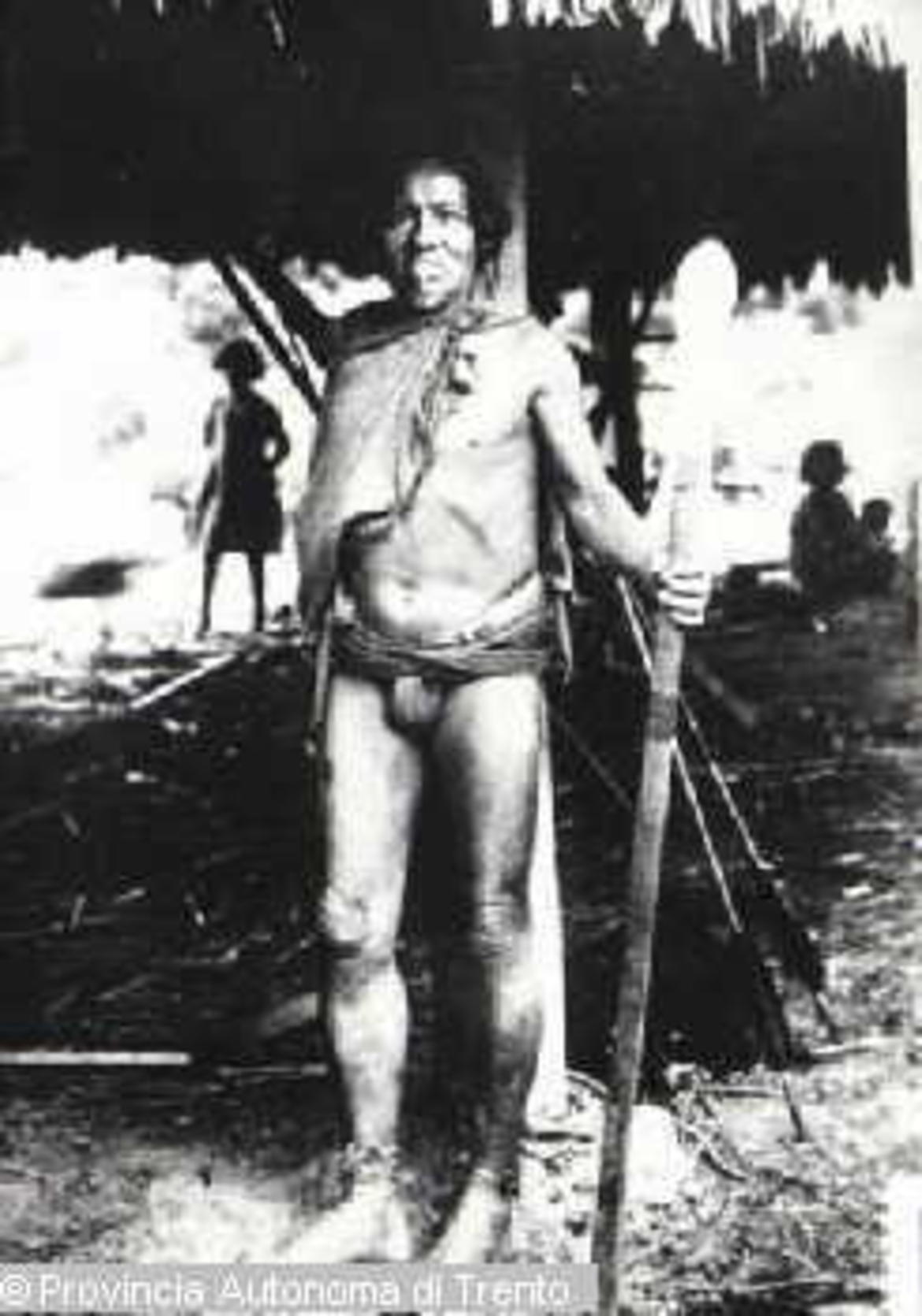 (BRASILE). RITRATTO A FIGURA INTERA DI UN INDIGENO PRESSO UNA CAPANNA. 1930 CA.