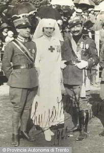 - RITRATTO A FIGURA INTERA DI LUISA ZENI IN UNIFORME DA CROCEROSSINA TRA DUE UFFICIALI. 1922