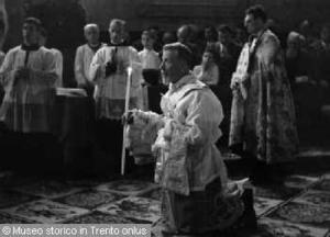 - TRENTO, CHIESA DI S. MARIA MAGGIORE. DON PAOLAZZI BONFIGLIO IN GINOCCHIO DURANTE LA CELEBRAZIONE LITURGICA