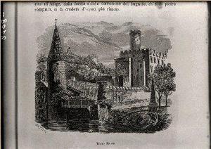 Riproduzione da libro raffigurante Torre Verde e Castello del Buonconsiglio
