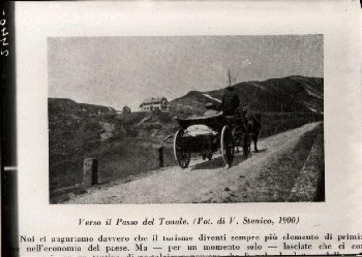 Riproduzione da libro raffigurante la vecchia strada verso il Tonale
