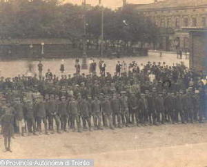 - PORTO NAVALE, GENOVA (?). SCHIERAMENTO DI UOMINI IN DIVISA MILITARE. 1915-1918