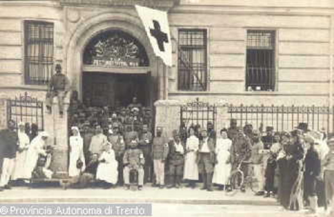 - TRENTO. SOLDATI E CROCESSINE DAVANTI ALL'OSPEDALE DELLA FORTEZZA