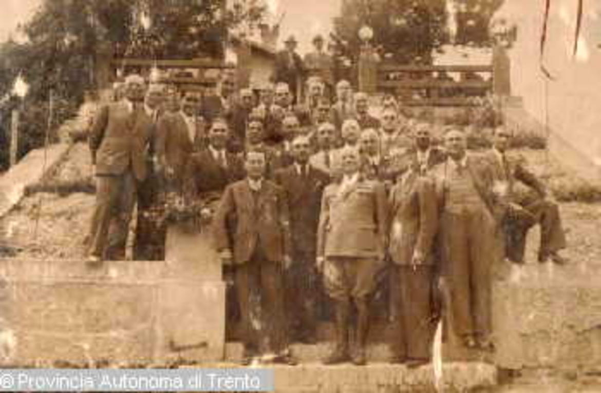 BOLOGNA. FOTO DI GRUPPO DI SUPERSTITI DEL GENIO TELEGRAFISTI DI KRASNOJARSK CON IL GENERALE COSMA MANERA. 1940