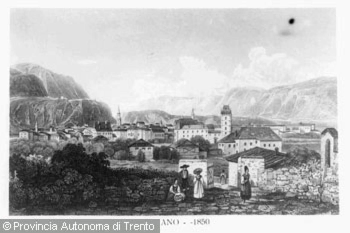 Stampa raffigurante Bolzano nel 1850