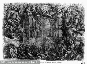 Stampa raffigurante Udienza del Concilio di Trento nella chiesa di S. Maria Maggiore"