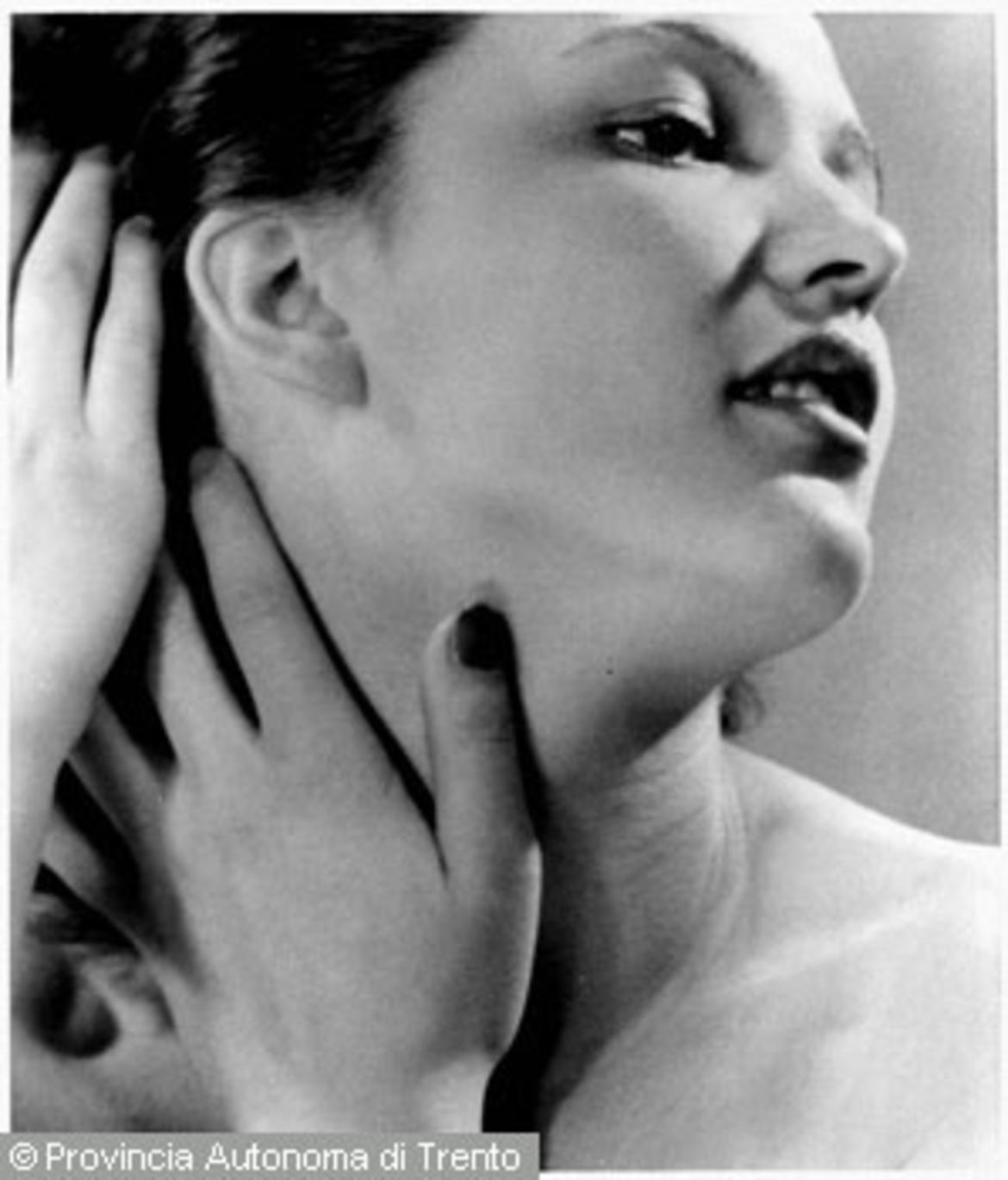 Studio di volto femminile con mani