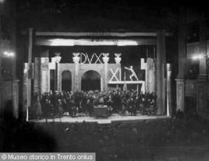 - TRENTO, TEATRO SOCIALE. PALCOSCENICO E PLATEA AFFOLLATI IN OCCASIONE DELLA VISITA DI ACHILLE STARACE. FEB. 1932