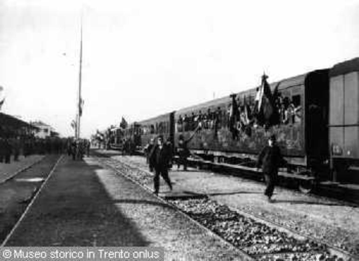 - PARMA (?), STAZIONE FERROVIARIA. TRENO CON CAMBATTENTI PARMENSI PRONTO ALLA PARTENZA PER PASSO BUOLE. 20 SET. 1923