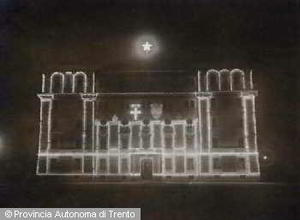 TRENTO, PIAZZA VENEZIA. ILLUMINAZIONE NOTTURNA IN OCCASIONE DELLA VISITA DEI SOVRANI. 11-12 OTT. 1921