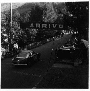 Trento, M. Bondone, loc. Vason: automobile concorrente all'arrivo della Trento-Bondone 1956