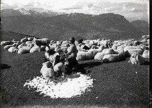 Trento, M. Bondone: panoramica su Paganella e Brenta, pastore con gregge al pascolo