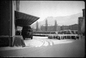 Trento, Maso Ginocchio: cortile con bidoni nella neve