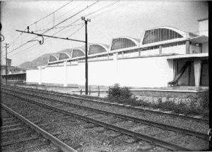 Trento, Mercato Ortofrutticolo: veduta del padiglione dalla massicciata ferroviaria