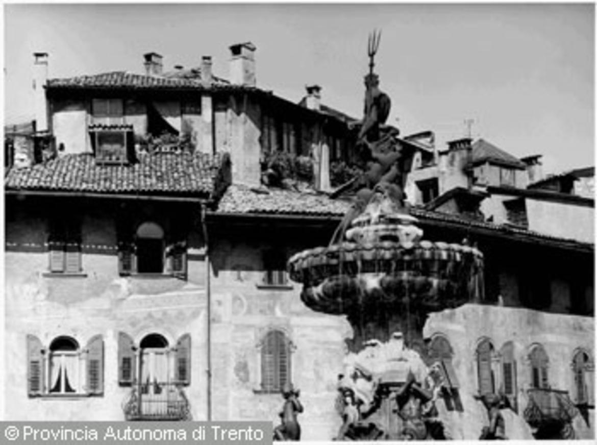 - Trento / Piazza Duomo / Fontana del Nettuno sullo sfondo di Case Rella, particolare