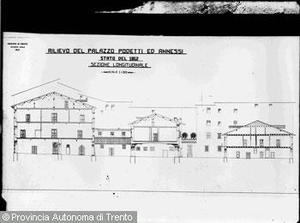 Trento, disegno tecnico raffigurante "Rilievo del palazzo Podetti ed annessi" (1912)