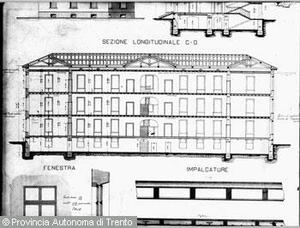 Trento, disegno tecnico raffigurante "sezione dell'ospedale militare"