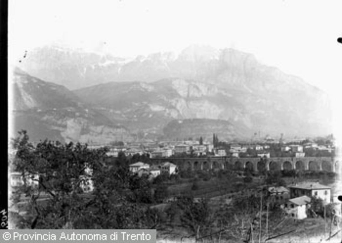 Trento, loc. San Bartolomeo, veduta col viadotto ferroviario della Valsugana