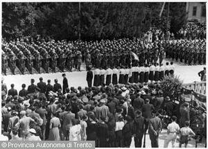 Trento, piazza Dante / Pubblico e soldati in parata durante un raduno militare