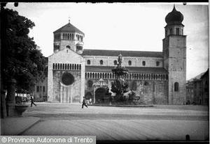 Trento, piazza Duomo, il Duomo e la fontana del Nettuno