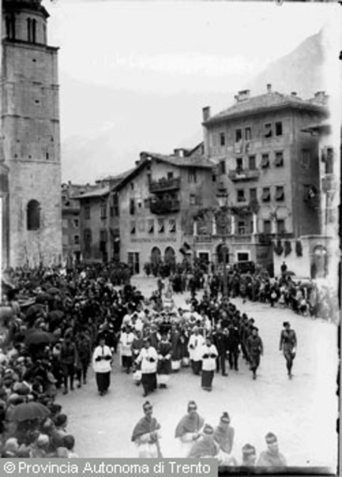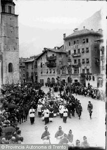 Trento, piazza Duomo, processione con l'urna di San Vigilio