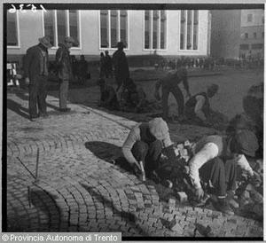 Trento, piazza Sanzio, lavori di pavimentazione stradale