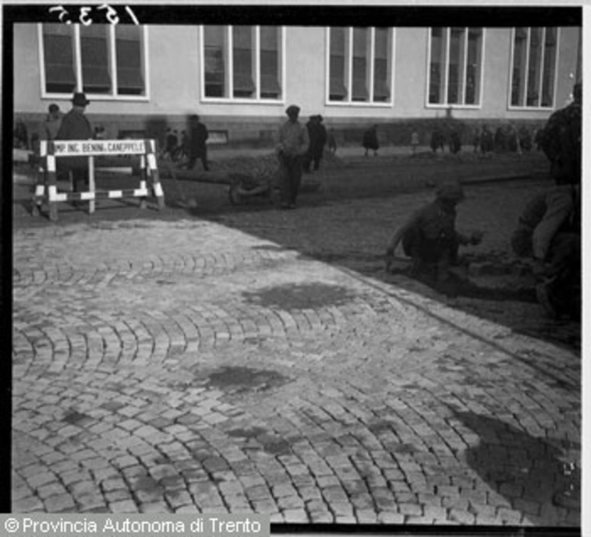 Trento, piazza Sanzio, lavori di pavimentazione stradale