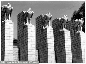 - Trento, piazzale delle Divisioni Alpine / Baluardi sormontati da aquile all'imbocco della strada che sale al Doss Trento