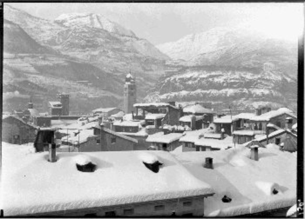 Trento, veduta dei tetti del centro storico coperti di neve, verso ovest