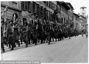- Trento, via Belenzani / Alpini con gli sci in spalla sfilano durante un raduno militare