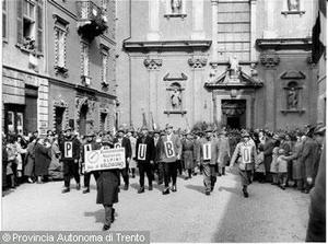 Trento, via Belenzani / Sfilata di vari reparti durante un raduno degli alpini