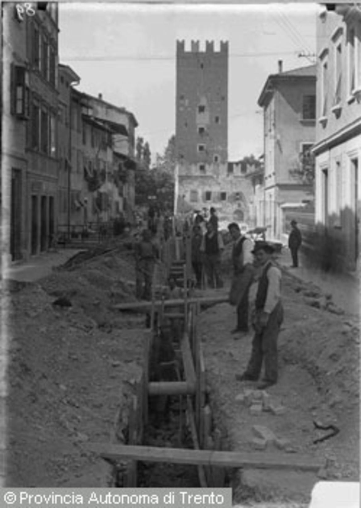 Trento, via della Prepositura, lavori per le fognature (1929)