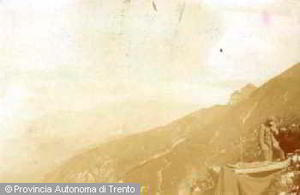 GRUPPO DEL PASUBIO. VEDUTA DA MONTE NOVEGNO, A LATO UOMO IN DIVISA MILITARE. 14 GIU. 1916