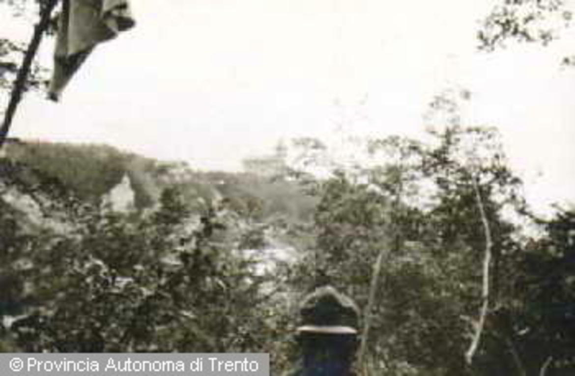 - GRUPPO DEL PASUBIO, PIAN DELLE FUGAZZE. VEDUTA DELL'HOTEL DOLOMITI, IN PRIMO PIANO UOMO IN DIVISA MILITARE. GIU. 1916