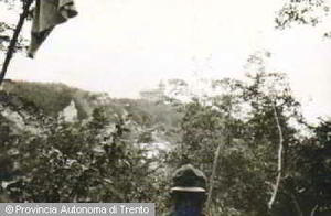 GRUPPO DEL PASUBIO, PIAN DELLE FUGAZZE. VEDUTA DELL'HOTEL DOLOMITI, IN PRIMO PIANO UOMO IN DIVISA MILITARE. GIU. 1916