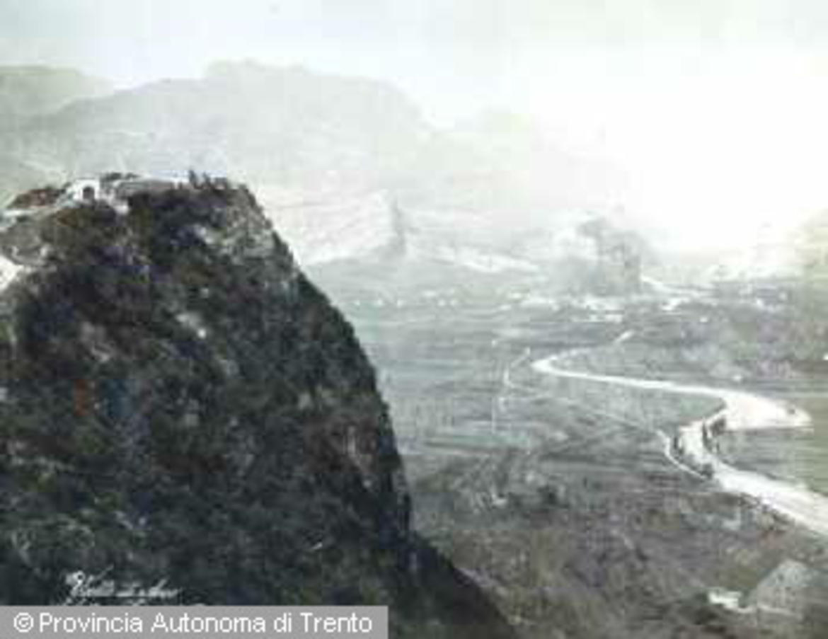 VALLE DEL SARCA. VEDUTA DELLA VALLE, IN PRIMO PIANO IL FORTE DI CAMPIDELLO. 1915-1918