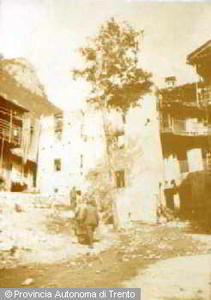 - VALLE DEL LENO, ANGHEBENI (VALLARSA, TN). VEDUTA DI ALCUNE CASE DEL PAESE DANNEGGIATE. 6 LUG. 1916