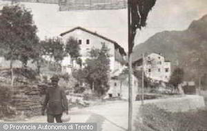 - VAL POSINA, BAZZONI (VI). VEDUTA DEL PAESE, IN PRIMO PIANO UOMO IN DIVISA MILITARE ITALIANA. OTT. 1917