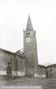 - BRENTONICO (TN). VEDUTA DELL'ORATORIO, DEL CAMPANILE E DELLA CHIESA DANNEGGIATA. 1916-1918