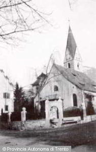 - ALTO ADIGE. VEDUTA DI UNA CHIESA, IN PRIMO PIANO FONTANA PRESSO UNO STECCATO. 1916-1918